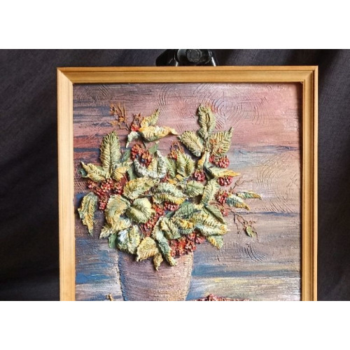 - Авторская работа 2023г. Натюрморт "Малинка", Холст на оргалите 30*40, в раме из дерева, акриловые краски, текстурная паста, объемное изображение, с обратной стороны подвес. картина из серии "Старинные вещи"