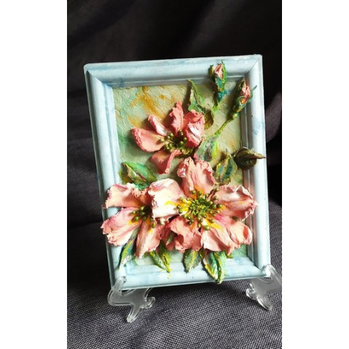 - Объёмная авторская работа 2023г.Миниатюра, "Цвет яблони" в рамке 12*17см на фанере, в раме из дерева, акриловые краски, текстурная паста, объемное изображение, с обратной стороны подвес.