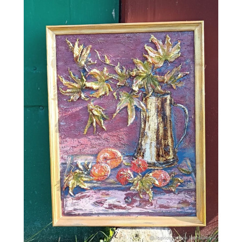 - Авторская работа 2023г. Натюрморт "Осень в кофейнике", Холст на оргалите 30*40, в раме из дерева, акриловые краски, текстурная паста, объемное изображение, с обратной стороны подвес. картина из серии "Старинные вещи"